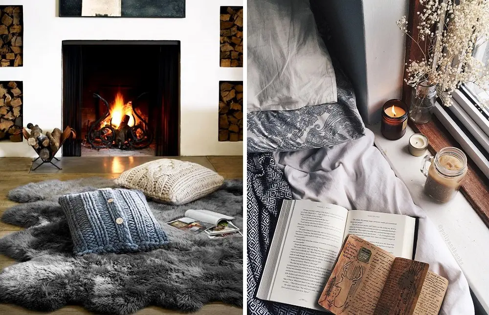 Jak powinny wyglądać wnętrza spójne z filozofią hygge? Przede wszystkim, powinny w nich dominować jasne, stonowane barwy, najlepiej bazujące na kolorach ziemi. Zaproście zatem do waszych wnętrz wszelkie odcienie bieli, beżów, szarości, kość słoniową i barwy kremowe. Schemat kolorystyczny powinien być kojący, spójny i tworzyć zgraną, odprężającą kompanię barw. Postawcie na nastrojowe wieczory i romantyczne aranżacje – nieograniczona ilość świec i świeczników rozmieszczonych w każdym domowym zakamarku z pewnością wam w tym pomoże. Zadbajcie o odpowiednią pościel – najlepiej bawełnianą, w 100% naturalną. Pamiętajcie o wietrzeniu sypialni przed snem! W zimowe wieczory, nic tak nie odpręża jak widok palącego się drwa w kominku – nawet jeśli posiadacie go jedynie w celach estetycznych, od czasu do czasu pozwólcie sobie na relaks i ten jakże wspaniały widok. Domowe akcesoria, takie jak tekstylia, meble, gadżety kuchenne, powinny być wykonane z naturalnych materiałów – mile widziani są: bawełna, len, drewno, czy też wełna. Zadbajcie o rodzinny klimat w mieszkaniu – familijne zdjęcia, pamiątki dzieci z podróży, czy też relikty rodzinnej przeszłości powinny wam przypominać o wartości, jaką jest ciepło ogniska domowego. Hygge we wnętrzach to również łazienka w stylu spa – postawcie na wannę jako czołowy element wnętrza, ogrom świec i wszędobylski aromat olejków eterycznych. Ah… Ja już się czuję lepiej!