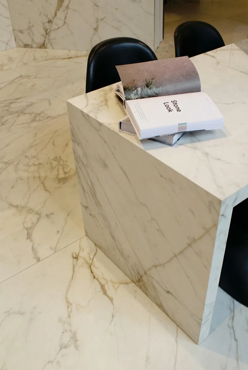 Kolekcja IH Selection wyróżnia się szerokim zakresem struktur i wykończeń, które pozwalają precyzyjnie dopasować płyty wielkoformatowe do charakteru projektu. W selekcji znajdują się powierzchnie inspirowane marmurem, kamieniem naturalnym, lastryko, betonem architektonicznym, metalem, a także wielkoformatowe kompozycje graficzne.