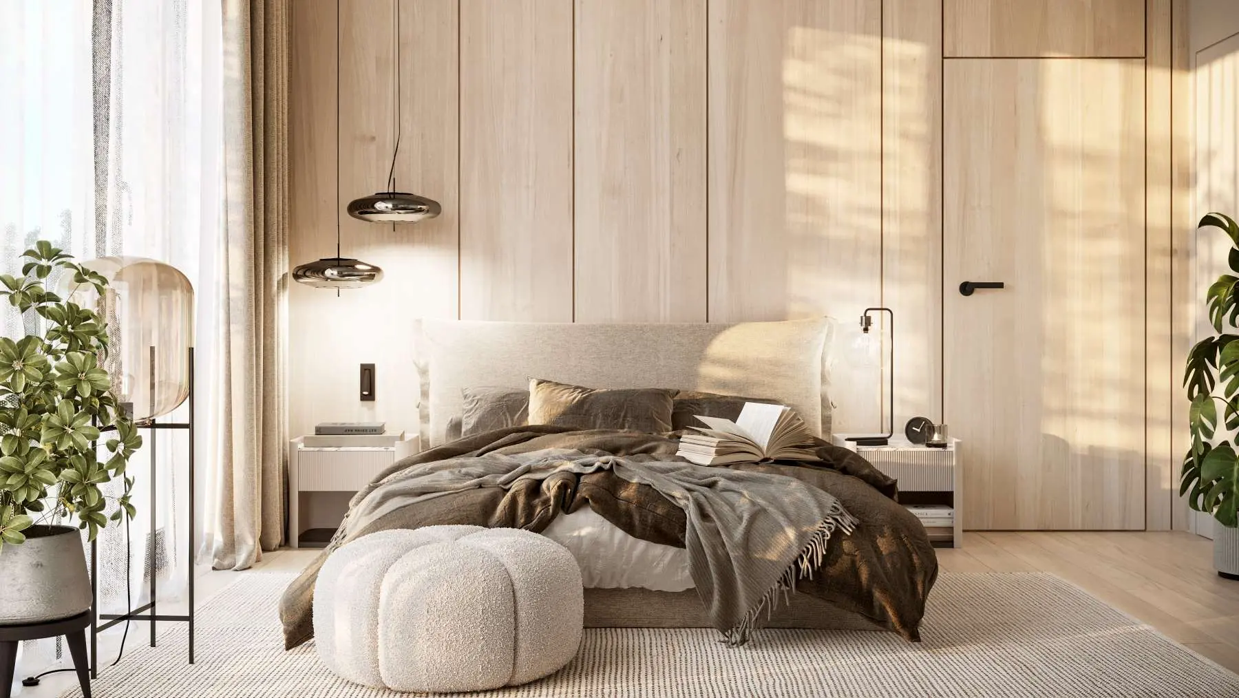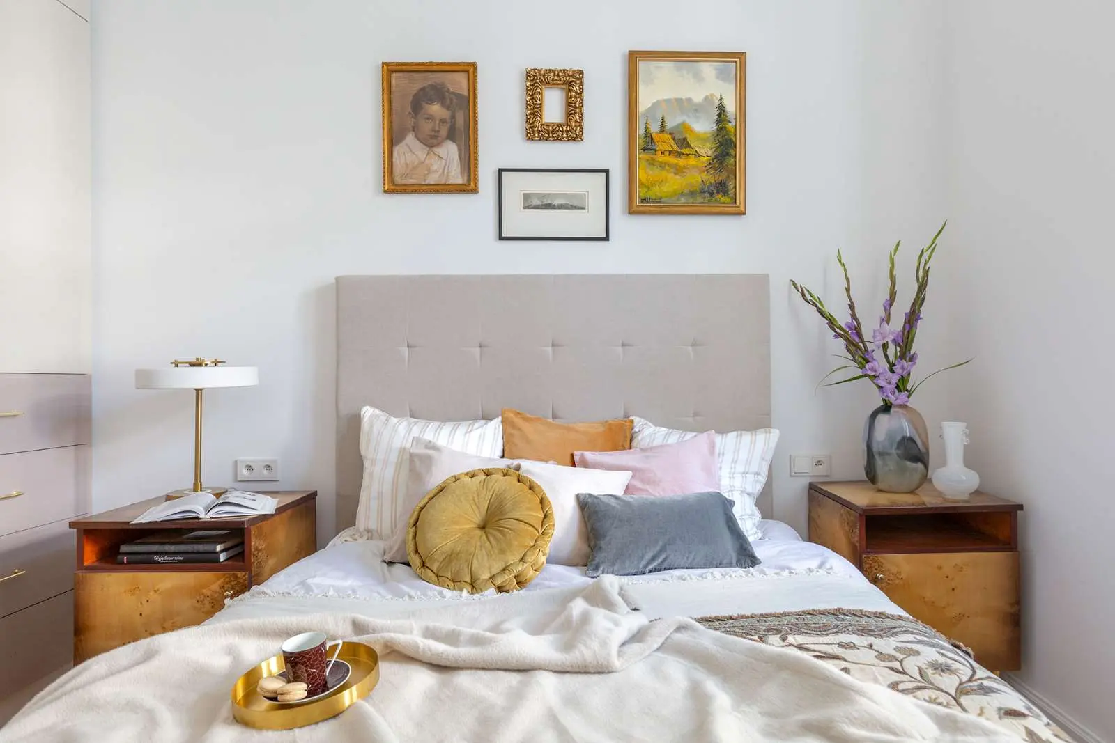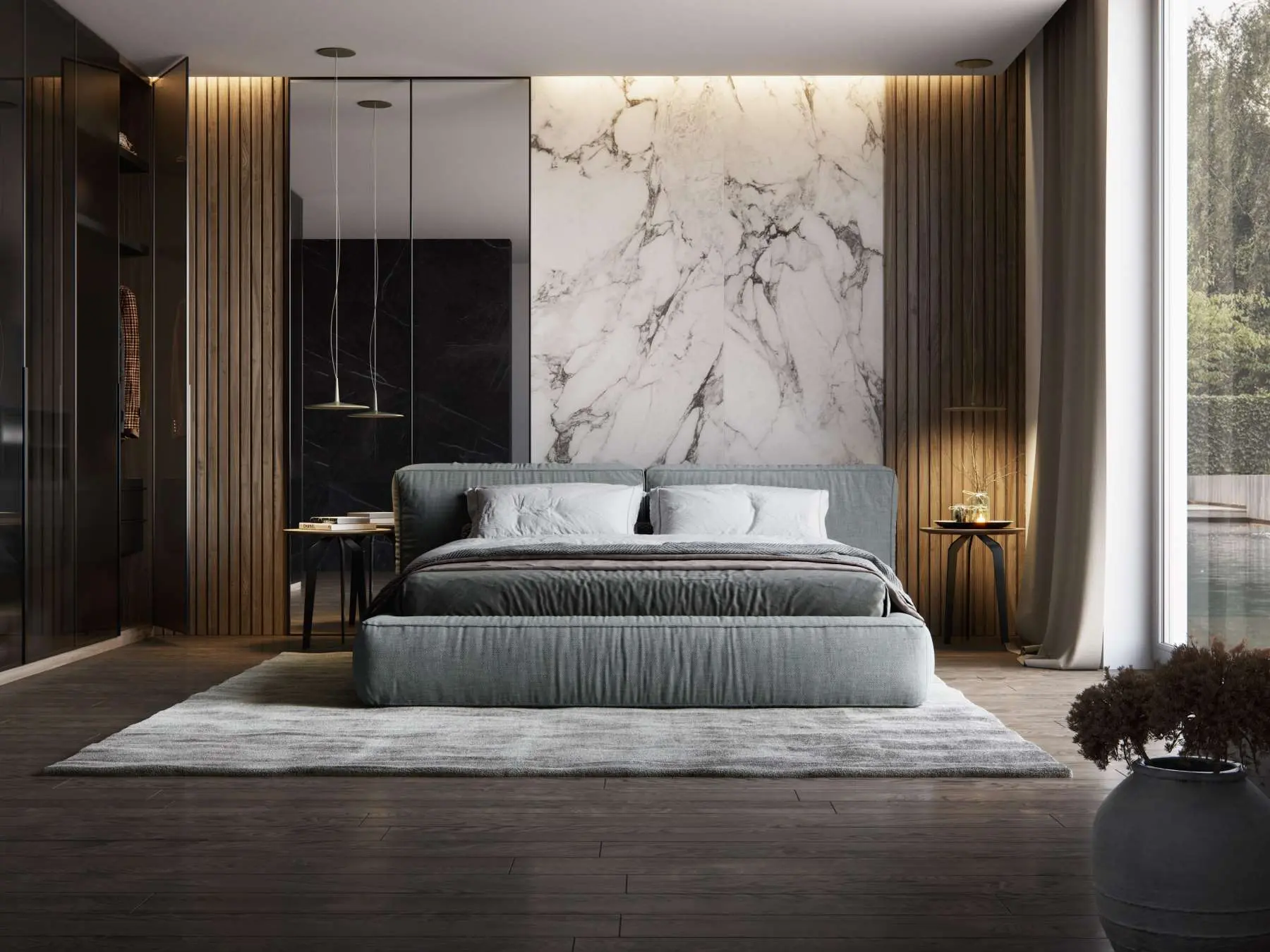 Choć minimalizm wciąż jest obecny, obecnie staje się bardziej ludzki, cieplejszy, opatulony teksturą i światłem. To już nie chłodna surowość, lecz wyciszenie z charakterem. Mniej znaczy więcej, ale to “więcej” ma serce — objawia się w fakturze tkaniny, w rzeźbiarskiej linii wezgłowia, w miękkości światła o zachodzie dnia.