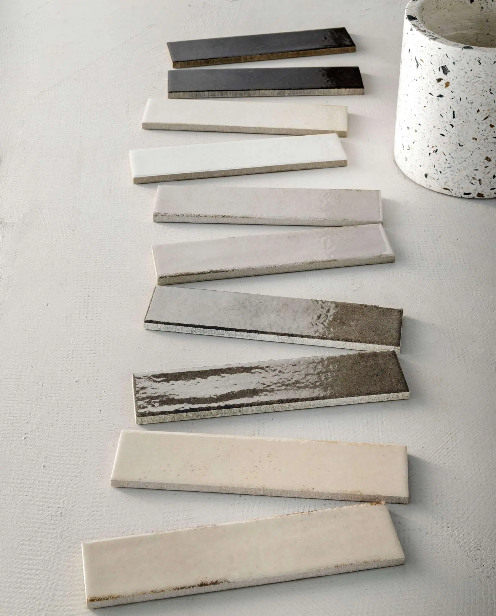 Paleta dostępnych kolorów składa się z 8 neutralnych odcieni. Powierzchnia płytek charakteryzuje się mnogością różnych wybarwień, blaskiem i niedoskonałymi krawędziami. Idealnie nadaje się do wykorzystania w połączeniu z materiałami o naturalnej inspiracji. Płytki dostępne w w formacie 6×25 cm.