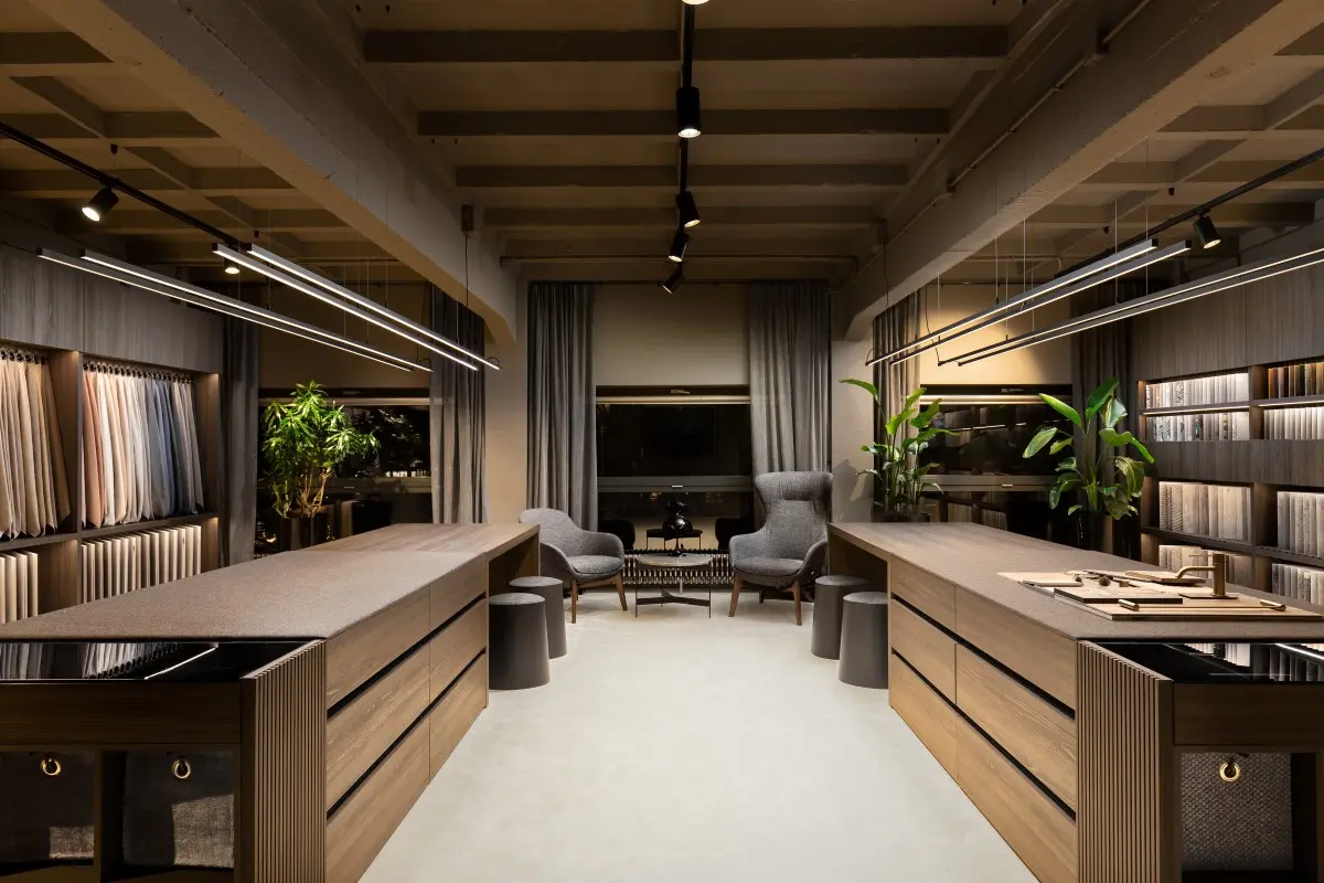 Aby stworzyć spójną aranżację wnętrza, należy zadbać, aby każdy jej element pasował do siebie. Dlatego w naszych Atelier, przygotowaliśmy w pełni wyposażoną i przystosowaną do kreatywnej pracy przestrzeń, gdzie każdego dnia architekci i klienci, wspólnie tworzą kolejne projekty. Światło w tej przestrzeni można dostosować i zmieniać w ramach różnych temperatur barwowych, co ma kolosalny wpływ na kolory produktów i ich spójność.
