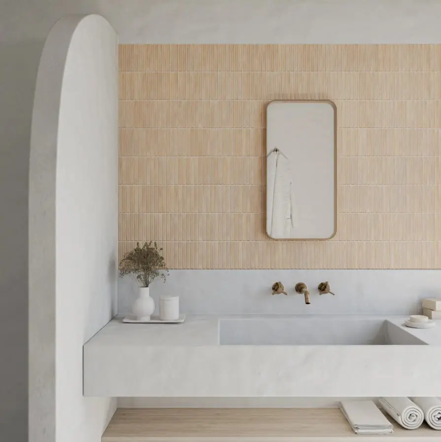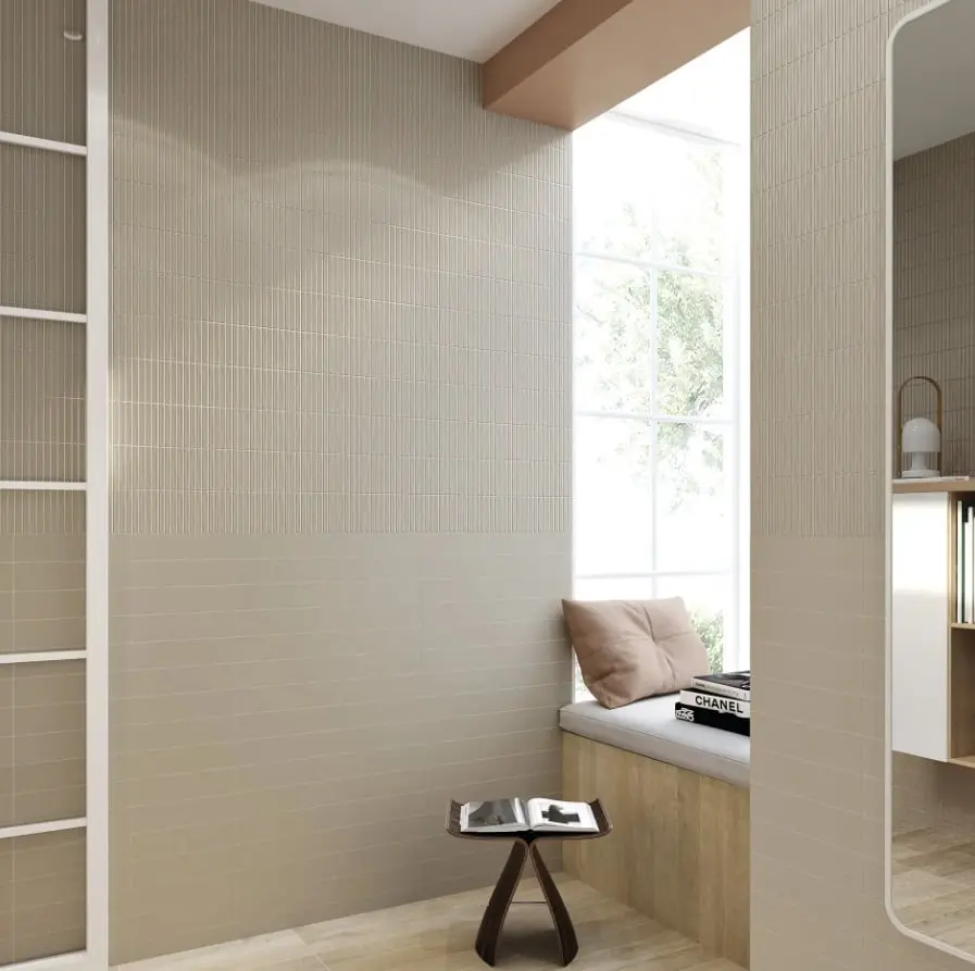 Małe, prostokątne płytki, najczęściej układane wertykalnie budują efekt wyjątkowo dekoracyjnej mozaiki. Duże znaczenie ma też użyta fuga – w zależności czy jest kontrastowa, czy dobrana do koloru ceramiki, pozwala stworzyć pożądany efekt wizualny. Architekci szczególnie chętnie, wykorzystują płytki Kit Kat w małych pomieszczeniach – aneksach kuchennych, niszach prysznicowych lub w strefie umywalki. Liczne warianty tego typu mozaiki: klasyczne, o nieregularnych kształtach, matowe, błyszczące, imitujące drewno, a nawet szklane, pozwolą wykreować wrażenie wzoru i tekstury nawet w minimalistycznym projekcie. Unikatowy charakter płytek sprawdzi się w każdym stylu zapewniając punkt fokusowy aranżacji.