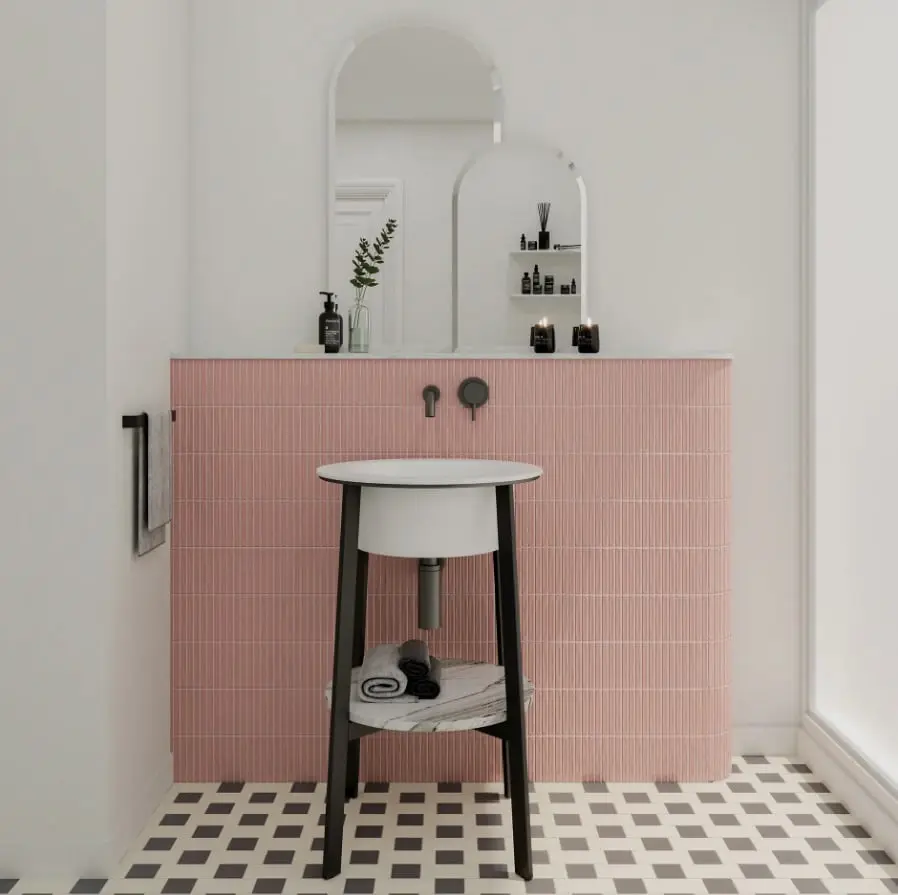 Architekci rekomendują użycie płytek Kit Kat, także w łazience, gdzie tworzą wyjątkową dekorację ściany pod prysznicem lub strefy umywalkowej. Piękno tych stylowych mozaik polega na tym, że oferują szeroki wachlarz możliwości w kreowaniu odważnych, bądź bardziej klasycznych wzorów. Pozwalają, również eksperymentować z kolorem i fakturą w przestrzeni. Płytki Kit Kat można łączyć z jasnymi lub ciemnymi kolorami fugi, aby uzupełnić kolor płytki lub całkowicie go skontrastować, tworząc mocne wrażenie wizualne we wnętrzu.
