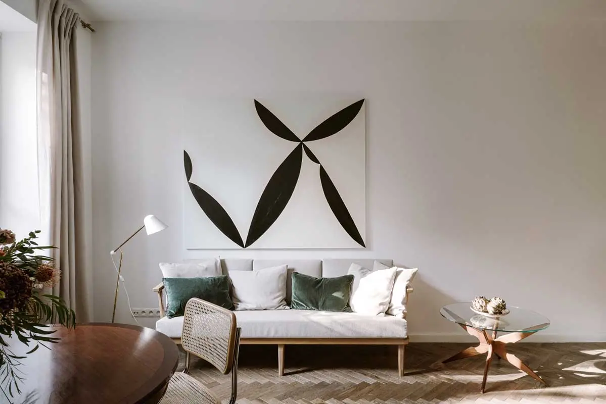 Podejście do sztuki we wnętrzu bardzo dynamicznie się zmienia. Lata dominacji ascetycznego scadi w polskich domach, nauczyło nas ograniczania dodatków. Ponadto wiele osób zdaje się nie być fanami obrazów czy tradycyjnej ceramiki, gdyż utożsamia tego typu elementy z „domem babci”. Jeśli już wybieramy dekoracje, ograniczamy się do ramek na ścianie lub sezonowych bibelotów. Natomiast w projektowaniu wnętrz, już od kilku lat, widoczny jest zwrot ku świadomemu wyborowi elementów, które nie tylko dekorują, ale i współtworzą aranżację. Architekci bardzo chętnie wykorzystują sztukę w swoich projektach, ubierając ściany w wyjątkowe obrazy, grafiki czy wartościowe plakaty. Kolejnym wielkim powrotem jest tradycyjne polskie rzemiosło w postaci ceramiki, szkła, ale i wyjątkowych modeli mebli. Dobrą inwestycją, która jednocześnie wzbogaca wnętrze jest design: oświetlenie, meble oraz dodatki brandów, produkujących modele w niemal niezmiennej formie od początku XX wieku, nigdy nie wyjdą z mody. Specjalnie dla naszych czytelników przygotowaliśmy selekcje najlepszych projektów, gdzie sztuka we wnętrzu stanowi integralną część aranżacji. Przekonajcie się sami, jak obrazy czy oryginalny design, budują indywidualny charakter pomieszczenia.