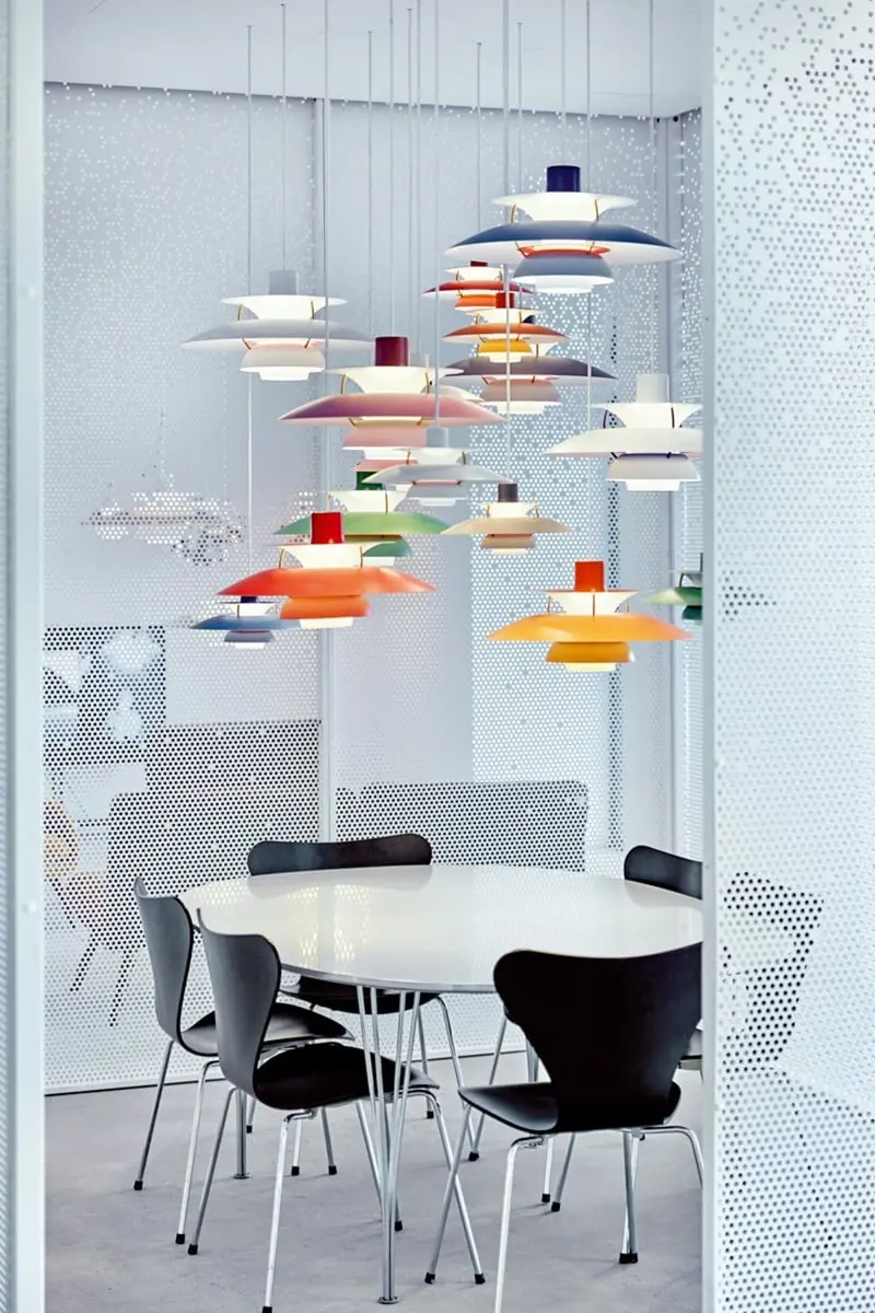 Lampa PH 5 Louis Poulsen to niekwestionowany ulubieniec architektów. Projektanci doceniają ponadczasowość modelu, który jednocześnie pozostaje ikoną skandynawskiego designu. Poza aspektami funkcjonalnymi tj. idealne światło, które nie razi i pozwala podziwiać PH z każdej strony, oprawa stanowi doskonałą dekoracje każdego wnętrza. Bez względu na styl aranżacji, PH uzupełni ją lub stanie się centrum uwagi. Jakość światła, jakie otrzymujemy, dzięki doskonale zaprojektowanemu żyrandolowi, sprawia, że PH najczęściej umieszczana jest nad stołem jadalnianym lub wyspami kuchennymi. Nowe wersje kolorystyczne klasycznego modelu pozwalają wprowadzić ciekawy akcent barwny do wnętrza. Wybór lampy PH to inwestycja w najlepszy design, który nigdy nie wyjdzie z mody.