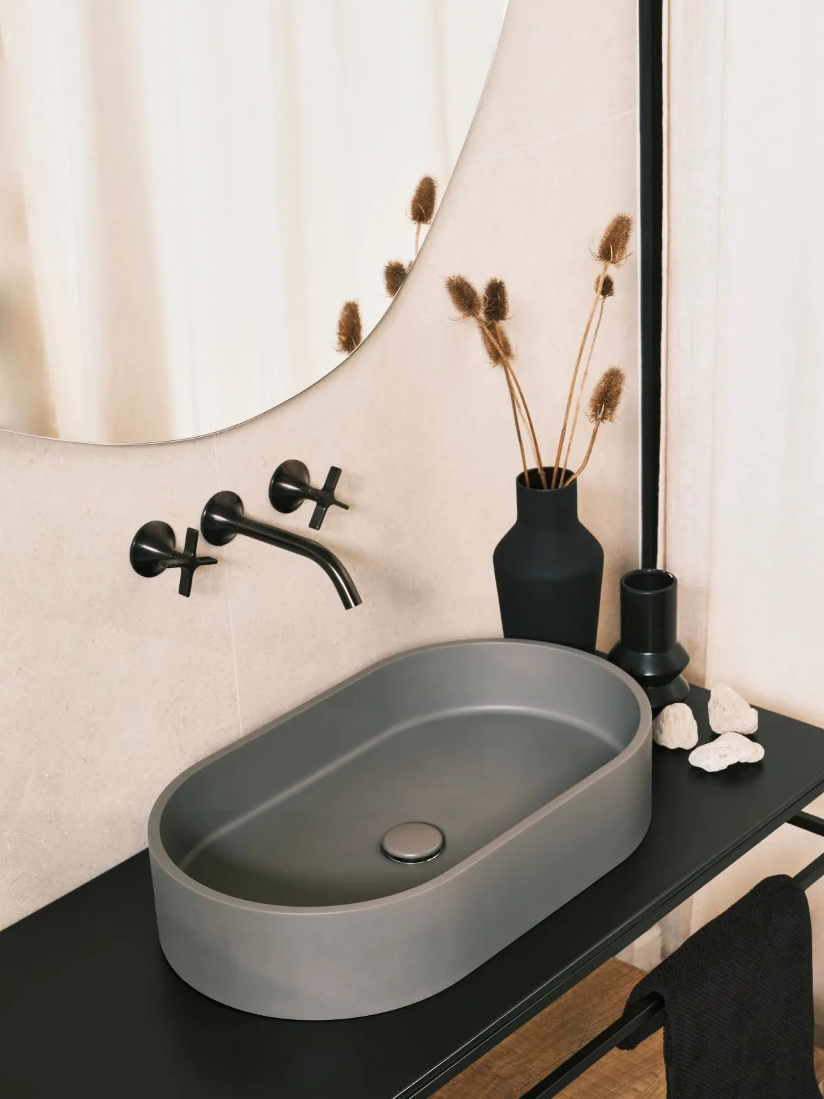 Zdecydowanie nie. Choć uchodzi za ekstrawagancki element wyposażenia łazienki, betonowa umywalka to również rozwiązanie dla tych, którzy cenią naturalne, trwałe i autentyczne materiały. Wprowadza do wnętrza spokój, stabilność i ponadczasowość. W połączeniu z odpowiednimi dodatkami – złotą armaturą, lustrem w metalowej ramie, czy drewnianą konsolą – tworzy aranżację pełną wyrafinowanego stylu.