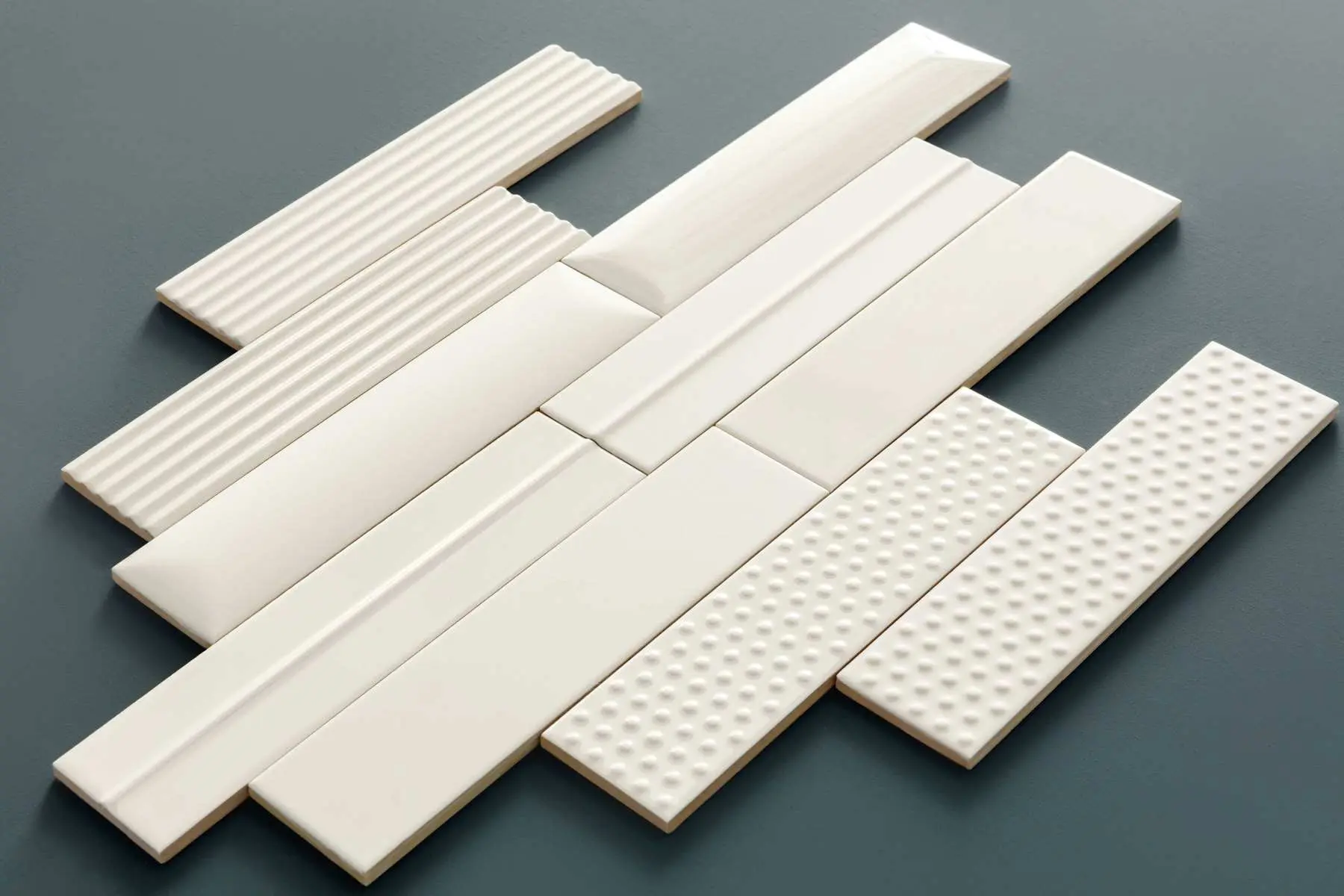 Kolekcja Vibes obejmuje płytki w kształcie popularnych cegiełek w rozmiarze 6,2 x 25 cm w nietuzinkowych wykończeniach w szerokiej palecie barw. Dostępne są w połysku oraz w macie.