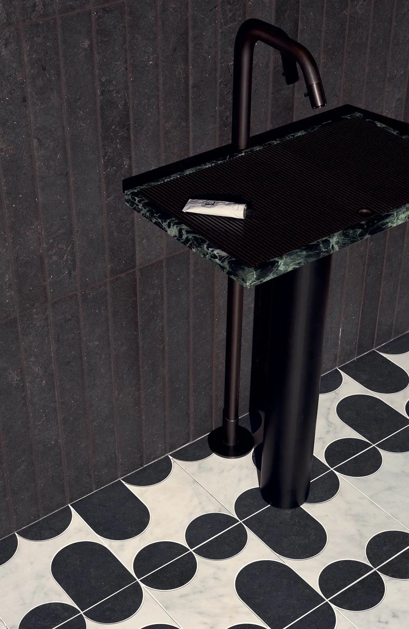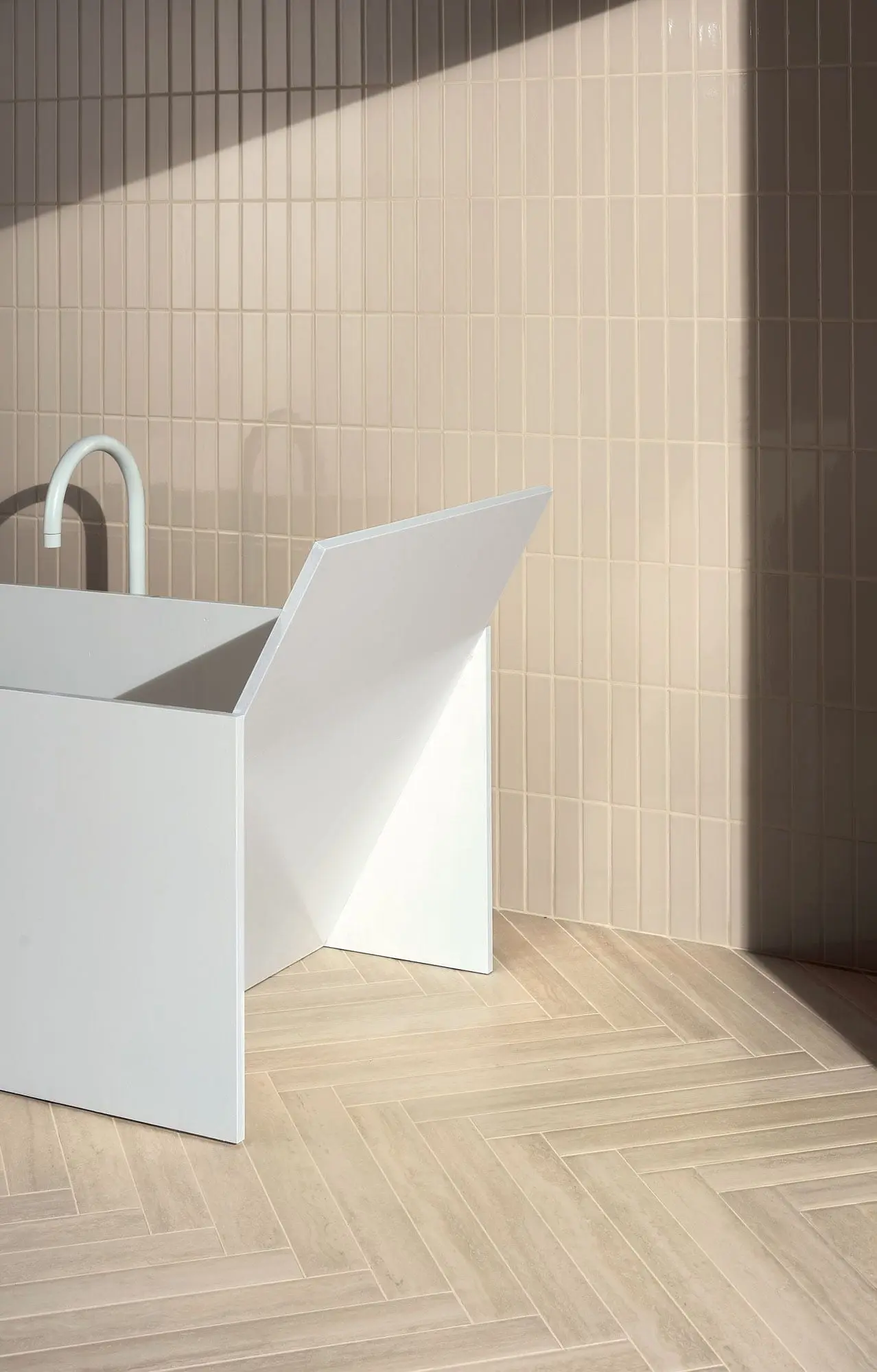 Kolekcja płytek 41zero42 ITALIC została zainspirowana trzema różnymi rodzajami kamieni: marmurem z Carrary, trawertynem i kamieniem lawowym. Kolekcja powstała w wyniku dokładnych badań nad strukturą i wykończeniem tych kamieni, przy zachowaniu inspiracji architekturą racjonalistyczną.