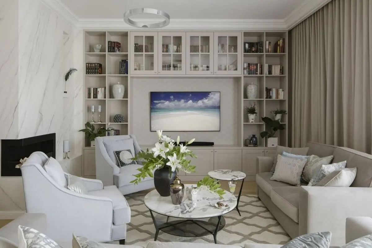 Kolejny z przedstawionych projektów udowadnia, że styl Hampton przeznaczony jest dla świadomych inwestorów i miłośników tej specyficznej estetyki. Rodzina z dwójką dzieci, która zgłosiła się do Magdaleny Miśkiewicz, od początku wiedziała, że ich przyszłe wnętrze ma być inspirowane nadmorskimi kurortami półwyspu Long Island. Aranżacja wzbogacona o chromowane i kryształowe elementy, zapożyczone z modern classic dekoracje, a także granat oraz dodatki ze wzorem marokańskiej koniczyny, stanowi przykład dopasowania stylu Hampton do indywidualnych potrzeb mieszkańców.