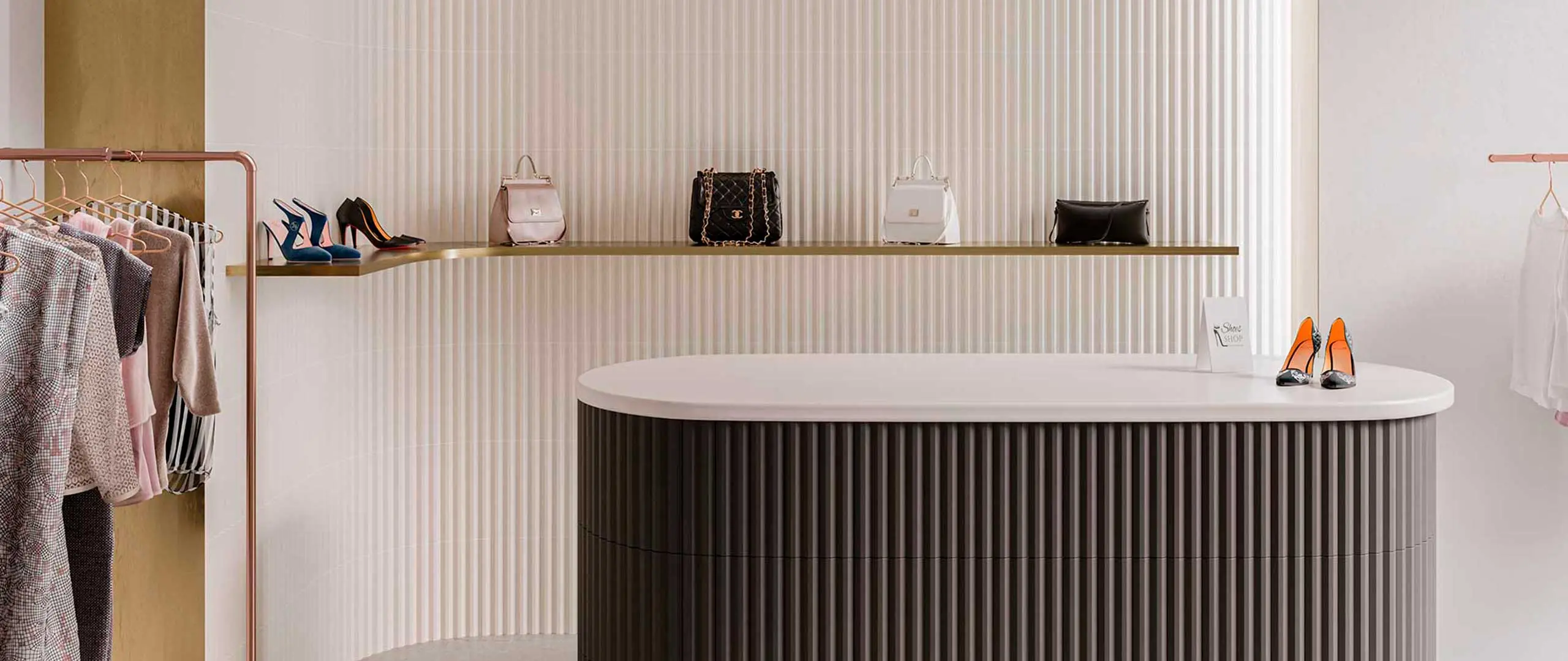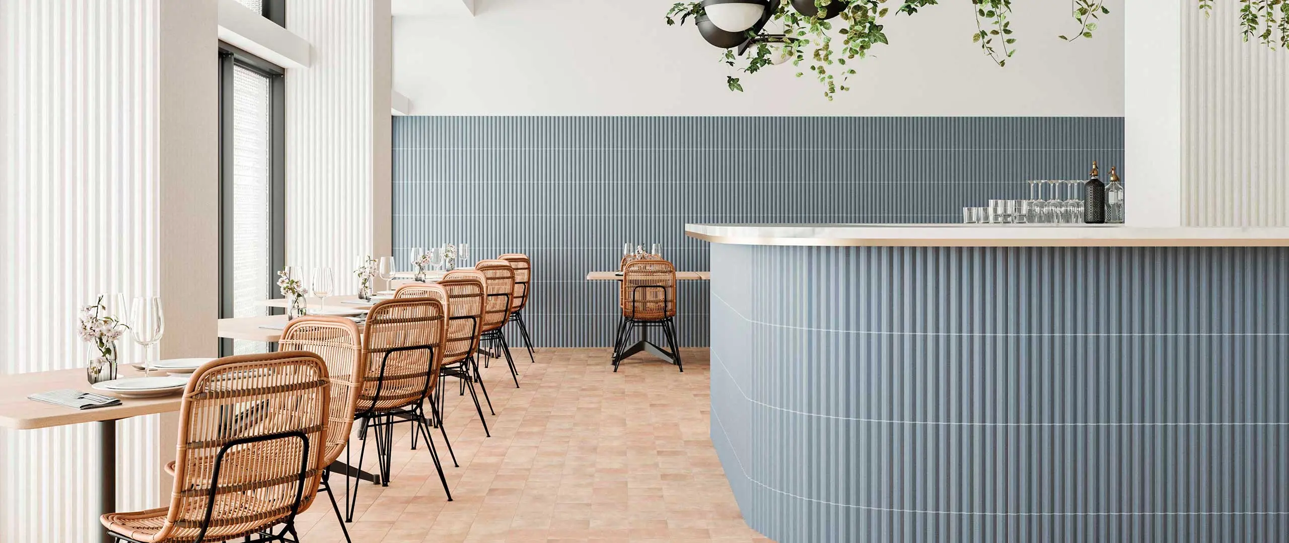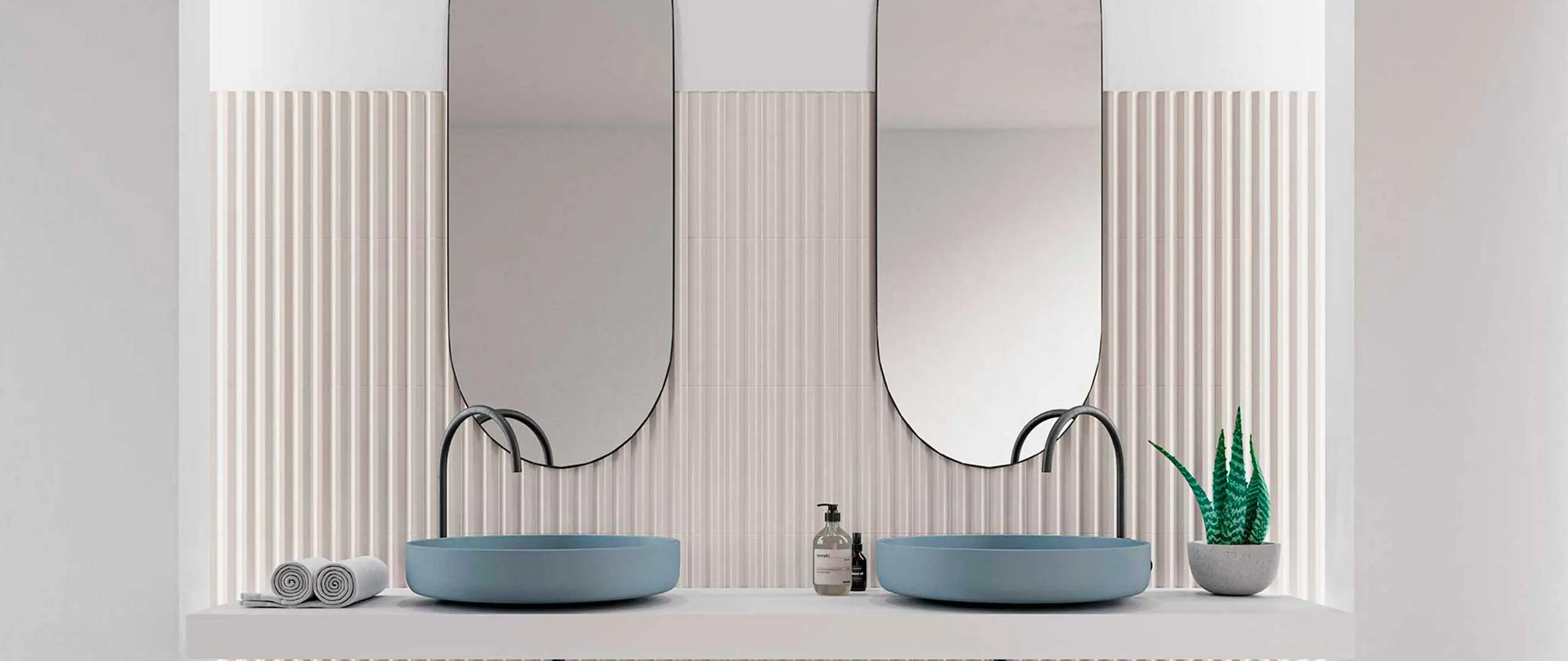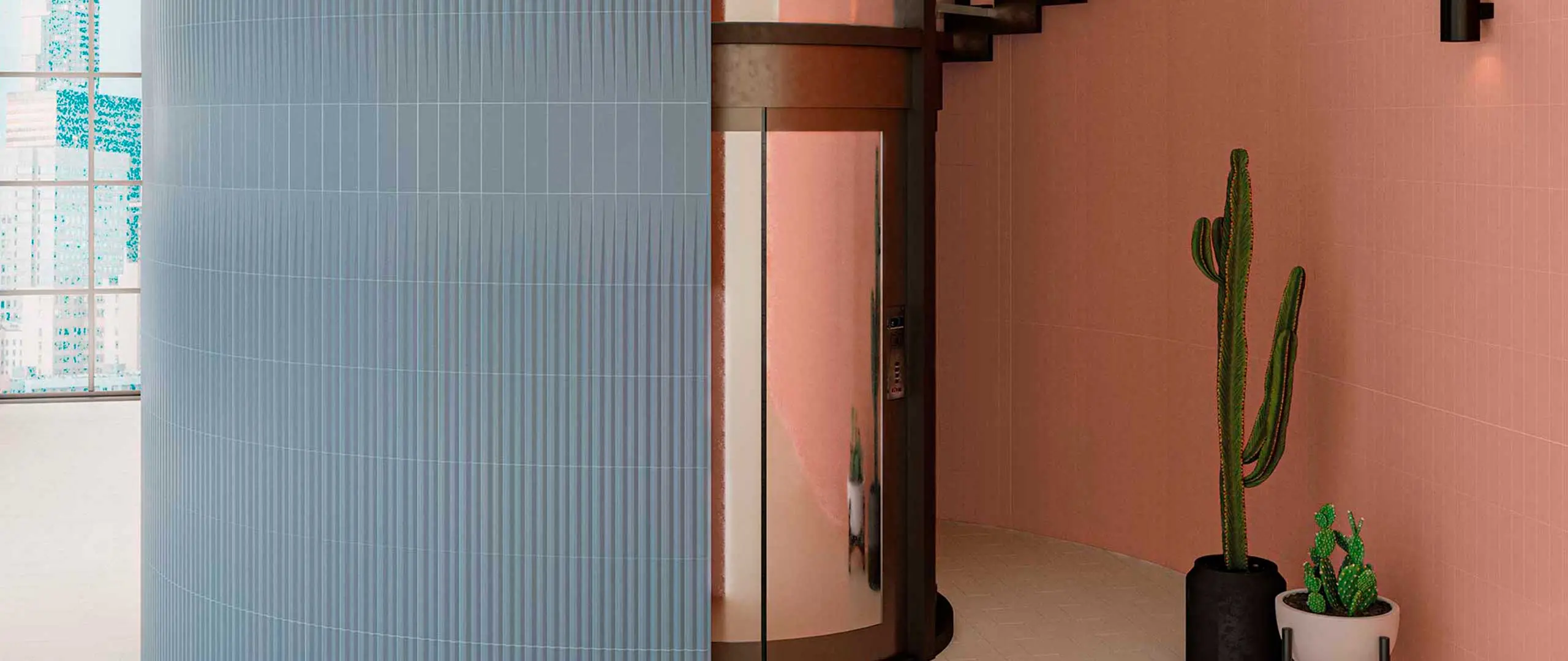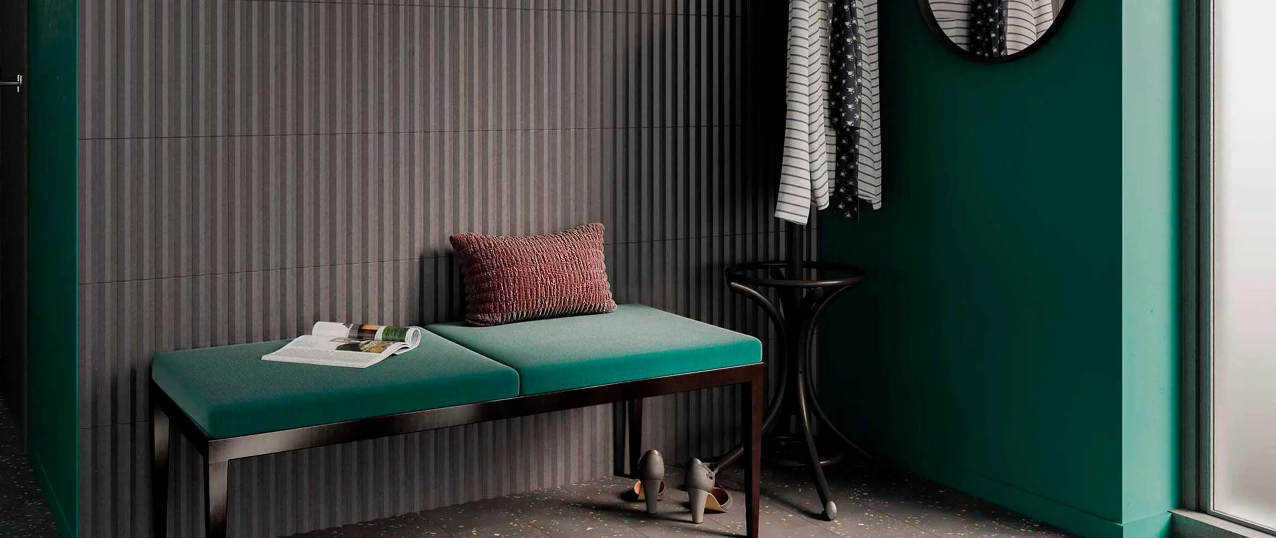 Architekci szczególnie upodobali sobie płytki Stripes jako narzędzie do wydzielania i podkreślania konkretnych stref w otwartych przestrzeniach. W holach wejściowych stają się powitalnym akcentem. W łazienkach tworzą zmysłowe tło dla stref relaksu. W salonach i przestrzeniach komercyjnych służą jako dekoracyjna oprawa dla wybranych ścian — akcentując, podnosząc rangę i nadając tożsamość fragmentom wnętrza.