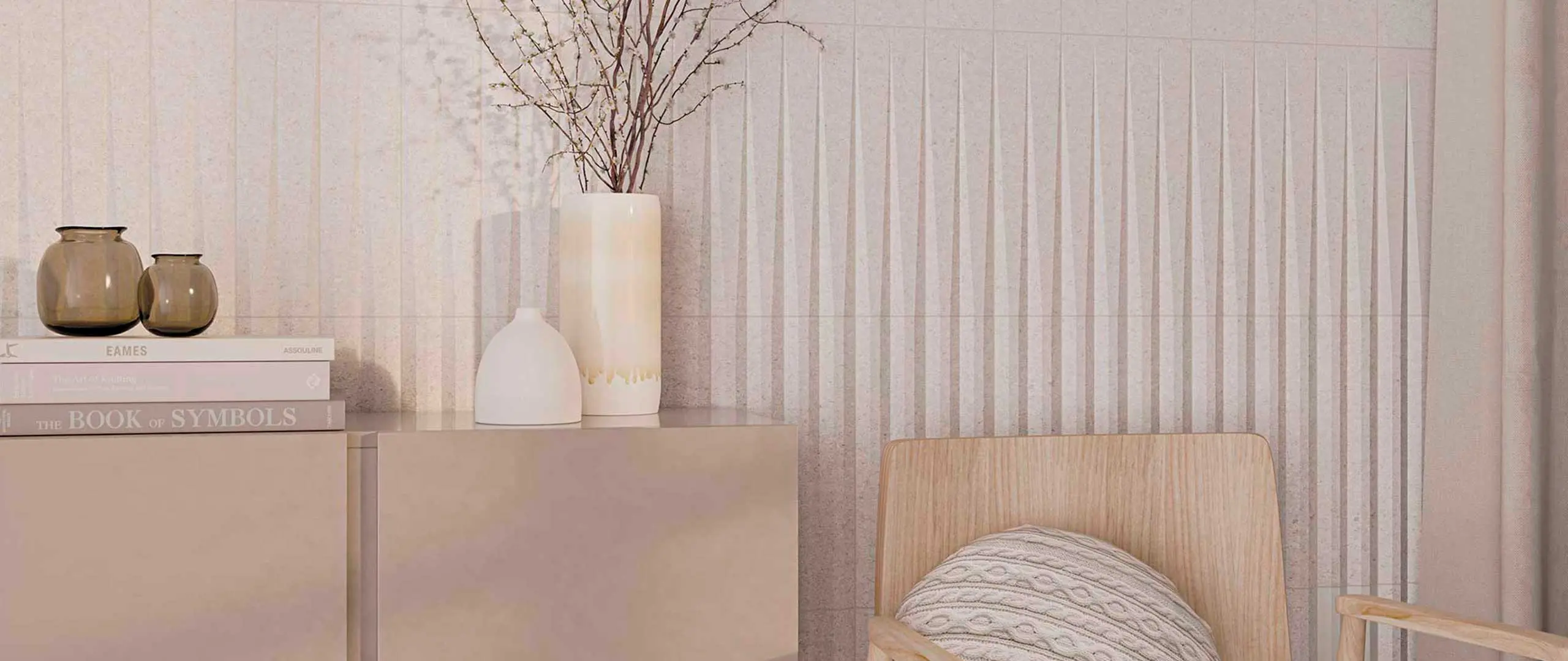 Płytki z kolekcji Stripes to nie tylko materiał wykończeniowy — to narzędzie ekspresji. Ich strukturalna forma pozwala światłu tańczyć po powierzchni, tworząc dynamiczne refleksy, które zmieniają się wraz z porą dnia i kierunkiem padania promieni słonecznych. Efekt 3D, subtelny i wyrafinowany, nadaje ścianom głębię, która hipnotyzuje i intryguje, zachęcając do dotyku, do kontemplacji, do zatrzymania się choć na chwilę.