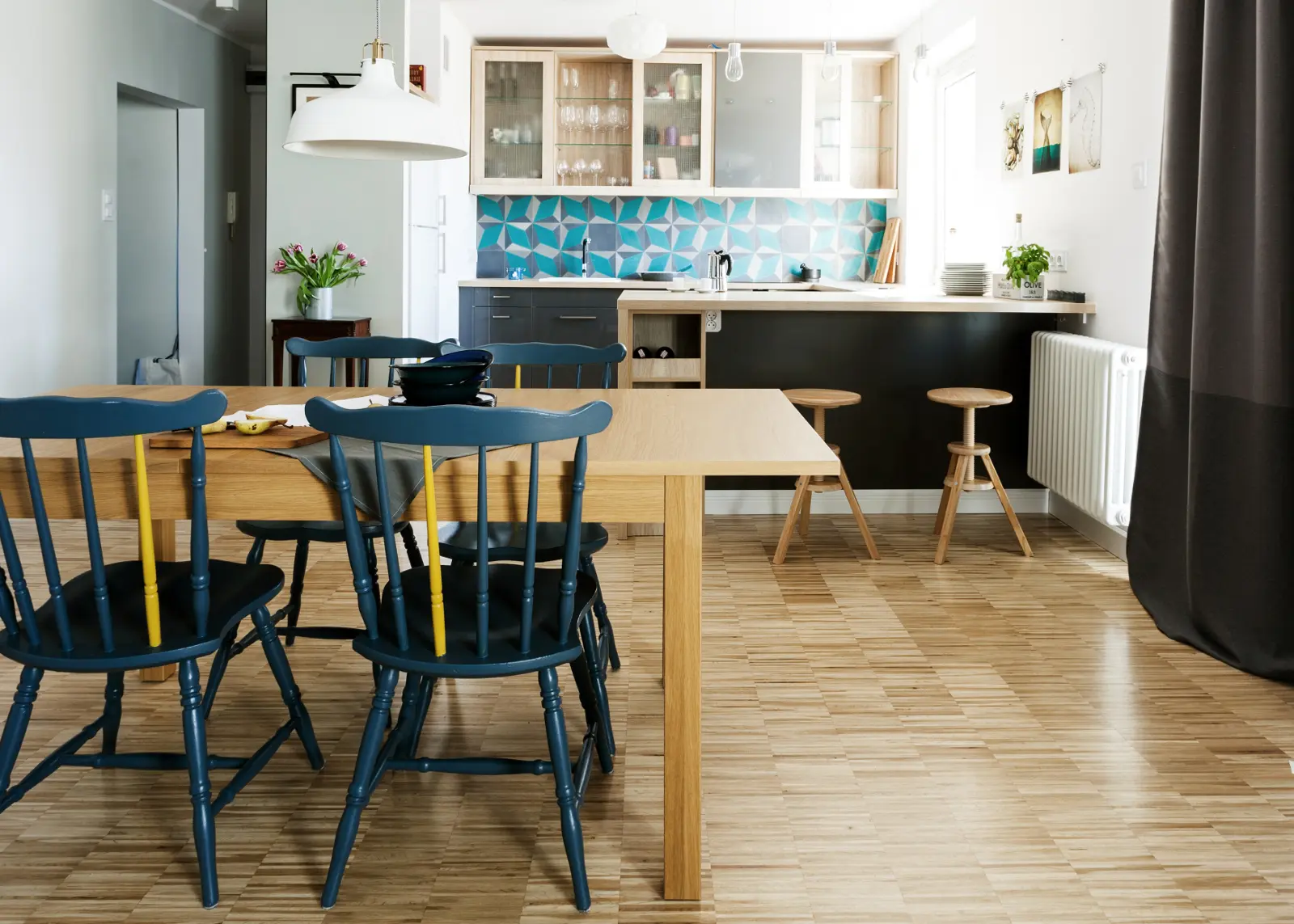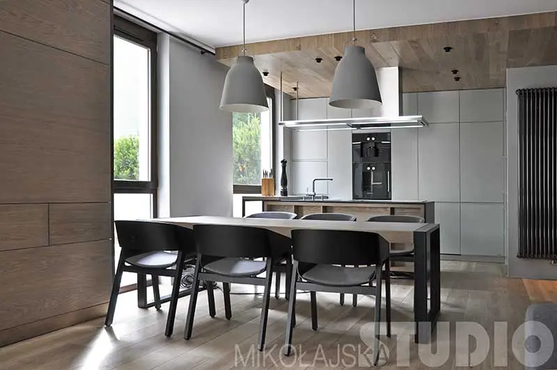 Szarość ma wiele odcieni. Od gołębiego, niemal białego zaczynając, na ciemnym, grafitowym kończąc. Tworząc z tego koloru bazę, dopełniając ją ciepłą fakturą i brązem drewna aranżujemy wnętrze stojące na skraju stylów skandynawskiego i prowansalskiego. Do tego żłobienia w drewnianych frontach szafek, oraz rustykalna, wzorzysta płytka na podłodze i projekt niemal gotowy!