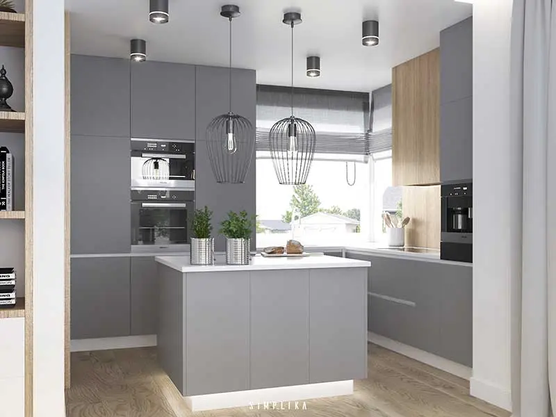 Nowoczesny projekt wnętrza domu jednorodzinnego w Wawrze to precyzyjnie utrzymany kierunek i klimat całego wnętrza. Koncepcja aranżacji opiera się na szarościach i bieli, która w całości ocieplona jest drewnem. Bardzo dobrej jakości zostały wykorzystane w salonie, który pełni strefę dzienną połączoną z otwartą kuchnią i bardzo przytulną jadalnią.