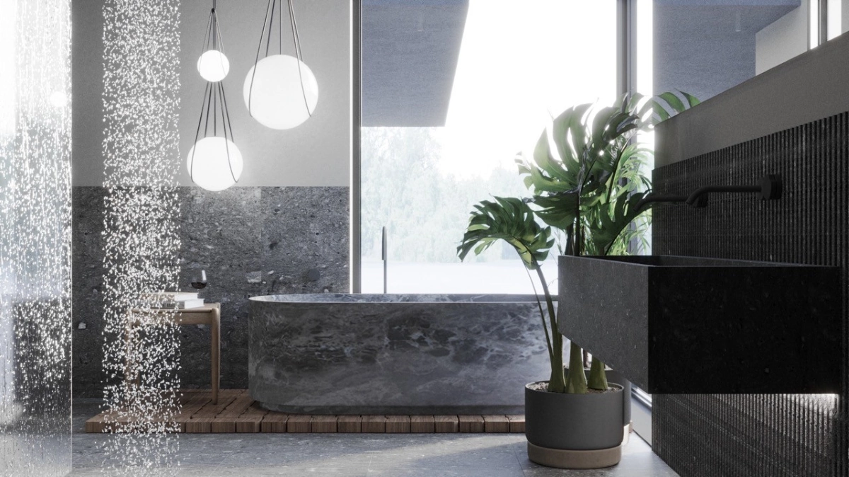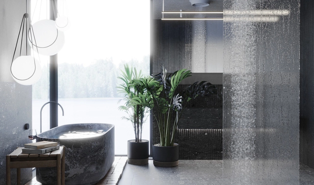 Jednym z kluczowych elementów domu w Konstancinie, zaprojektowanego przez pracownię Interiorsy, jest łazienka, utrzymana w stylu spa. Tworzy ona miejsce odprężenia i relaksu, co jest zgodne z koncepcją japandi. Natura jest tu nie tylko inspiracją, ale i integralnym elementem wnętrza. Kamień o ciemnoszarym wybarwieniu, użyty w łazience, współgra z jasnymi, stonowanymi barwami pozostałej części domu, tworząc spójną i harmonijną całość. Takie podejście do projektowania łazienki nie tylko wprowadza elementy luksusu, ale też umożliwia głębokie wyciszenie i odprężenie w domowym zaciszu.