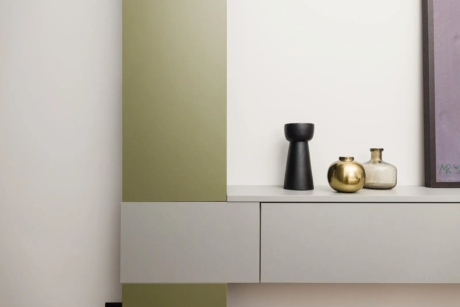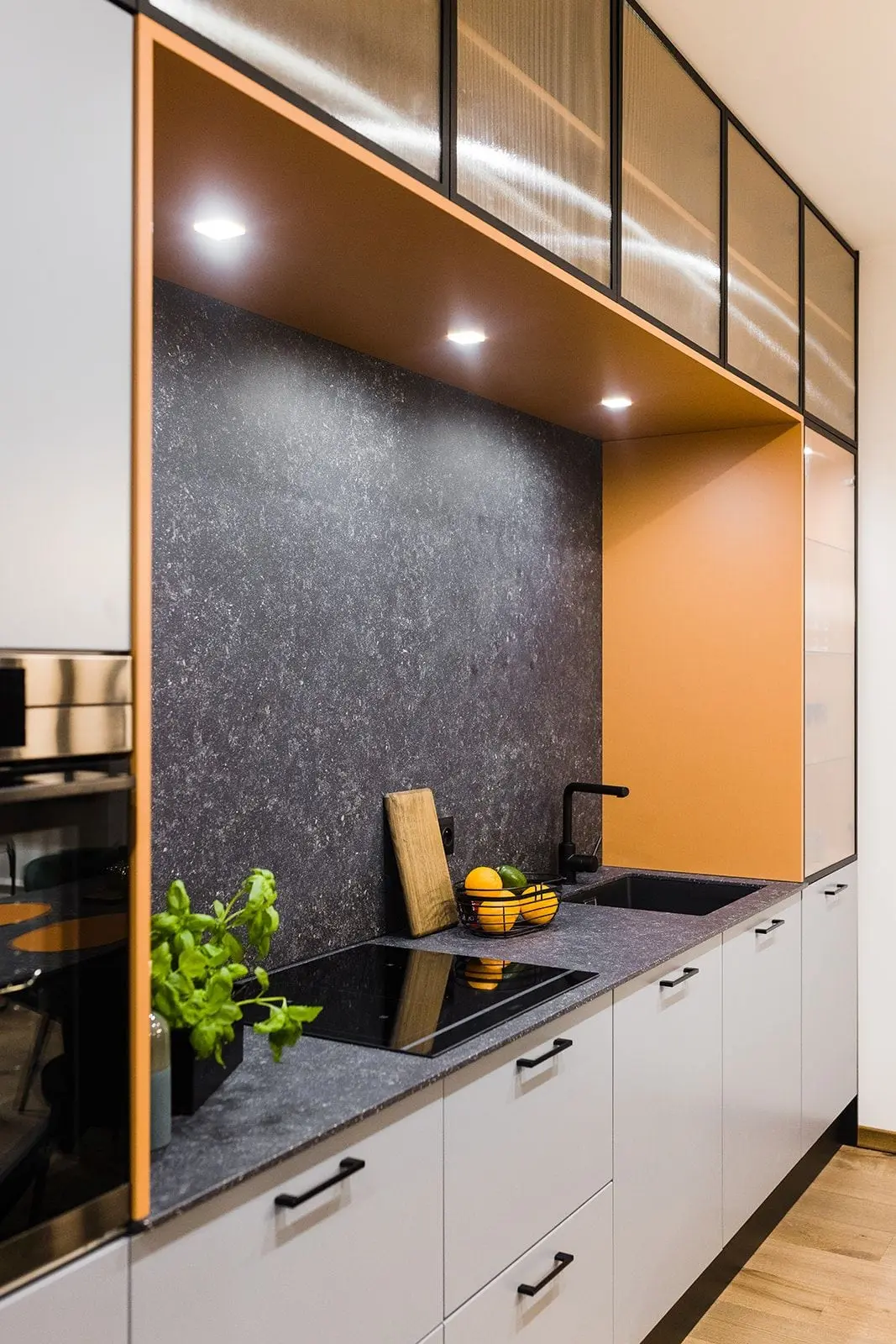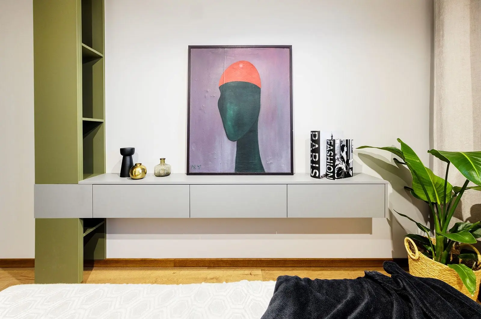 Czy udało się osiągnąć zamierzone cele? Tak, wnętrze spełnia założenia architekta, tworząc harmonijną i funkcjonalną przestrzeń. Szarość ścian stanowi neutralne tło, na którym wyraźnie eksponują się akcenty. Te barwy dodają wnętrzu energii, a jednocześnie nie przerywają spójności minimalistycznego designu. Duża ilość szaf i ukrytych przestrzeni pozwala utrzymać porządek. Obrazy i tynki na ścianach dodają wnętrzu charakteru, sprawiając, że każde pomieszczenie wydaje się być unikalne.