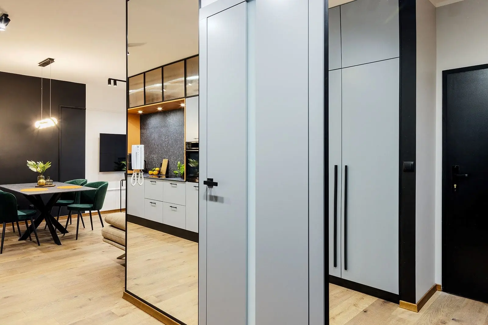 Głównym celem projektu było stworzenie funkcjonalnej przestrzeni, w której Inwestor mógłby czuć się swobodnie i komfortowo. Dlatego też, projekt zakładał dużą ilość szaf i zamkniętych przestrzeni, aby zachować porządek i uporządkowanie. Minimalizm był kluczowym założeniem, eliminując zbędne elementy, co przyczyniło się do optycznego powiększenia przestrzeni.