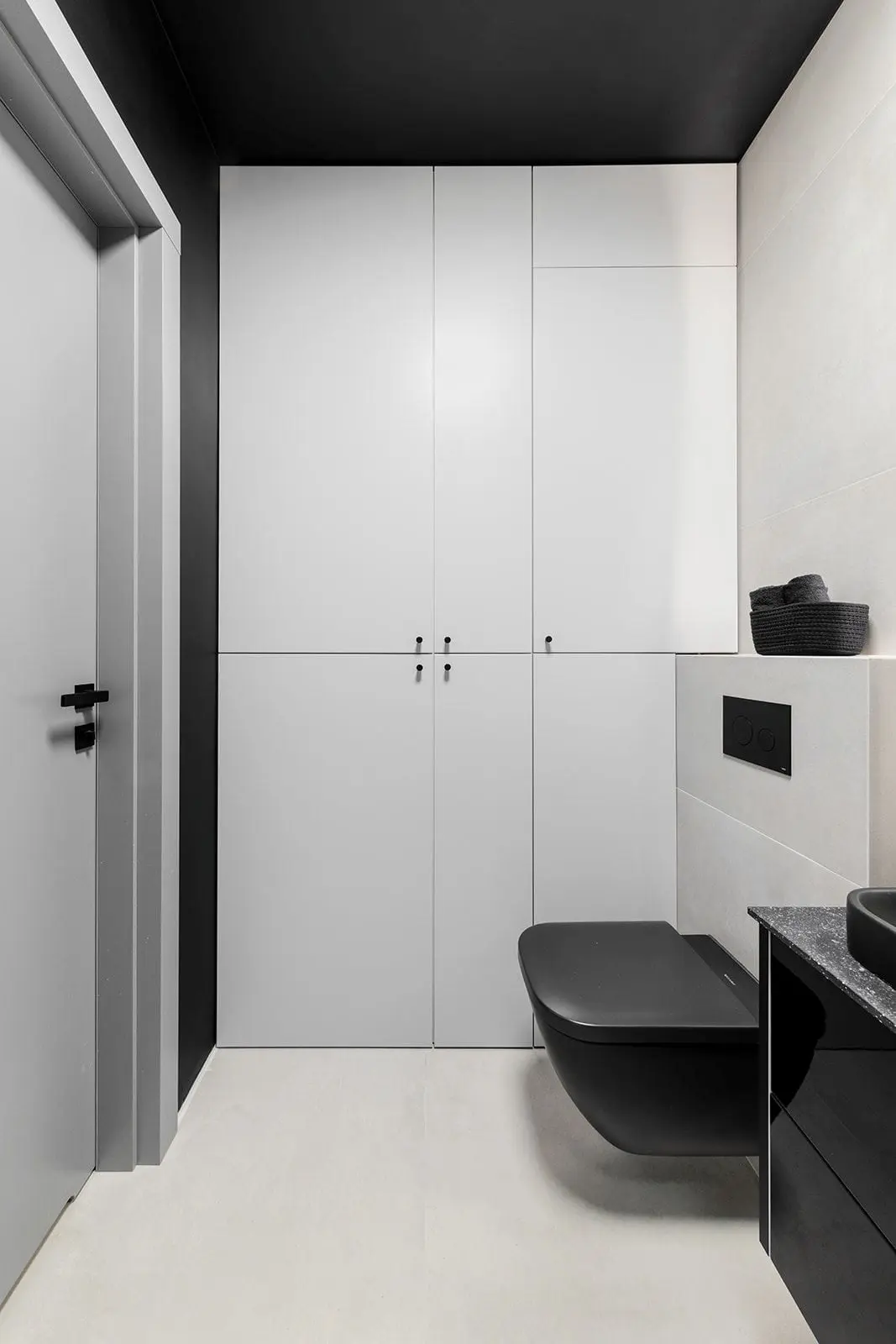 Architektura tego wnętrza bazuje na zasadach minimalistycznego podejścia do projektowania. Główną inspiracją dla projektanta było stworzenie przestrzeni o prostych formach, pełnej harmonii i spokoju. Wiodącym kolorem, którym jest szarość, tworzy się neutralne tło dla pozostałych elementów wystroju.