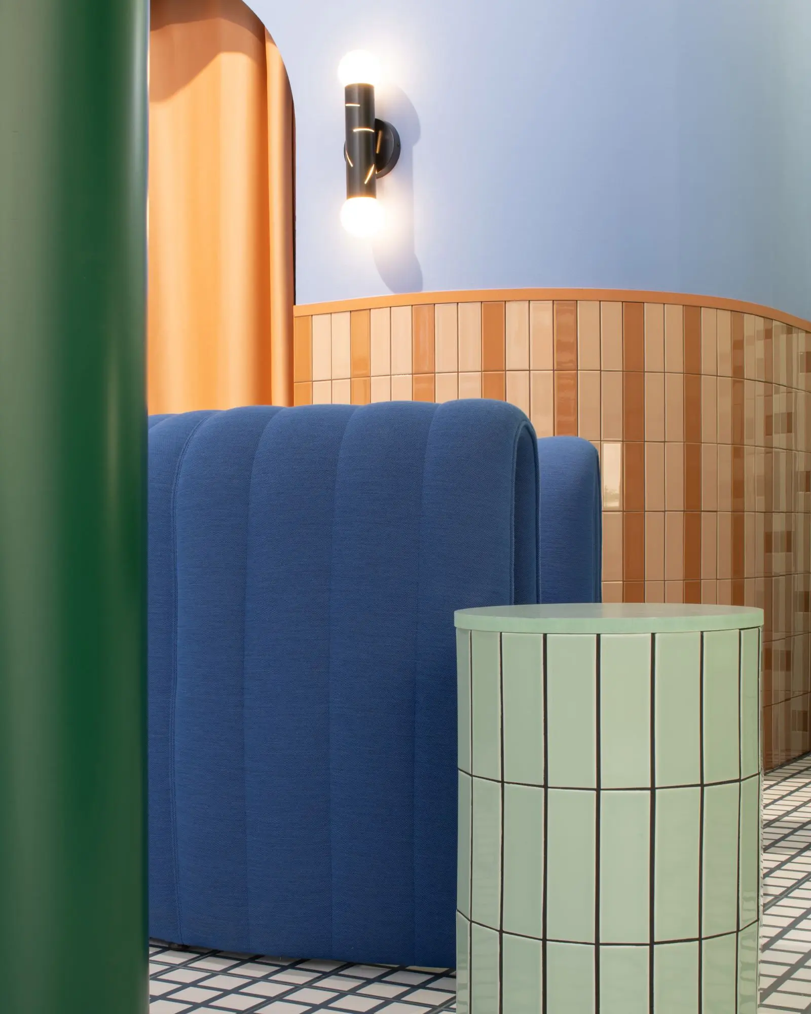 Dzięki matowemu wykończeniu możliwe jest uzyskanie ciągłości powierzchni między podłogą a ścianą. Szeroka gama kolorystyczna, składająca się z 13 kolorów w wersjach błyszczącej i matowej, pozwala na tworzenie odważnych kontrastów lub subtelnych zestawień ton w ton, wprowadzając dynamikę na ścianę.