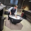 Rafał Hampel: Przede wszystkim trzeba mieć pomysł ,,na siebie” i podcast. Odnaleźć niszę, w której czujemy się dobrze. Kiedy w mojej głowie narodził się pomysł nagrywania podcastu „Spokojnie o wnętrzach” miałem już ułożony wstępnie plan o czym i z kim chcę rozmawiać na pierwsze 10 odcinków. Lubię słuchać ludzi, więc założyłem od razu, że będą to rozmowy z osobowościami naszej branży. Słyszałem wątpliwości czy o wnętrzach da się mówić bez obrazu (przez pierwsze dwa i pół roku odcinki ukazywały się wyłącznie w formie głosowej na Spotify), ale miałem przekonanie, że wnętrza będą trochę przy okazji, a najważniejsi w tym są ludzie, którzy te wnętrza i branżę tworzą.