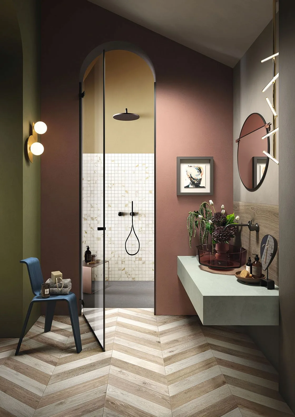 Paleta Pigmenti obejmuje 12 kolorów — to efekt analizy trendów architektonicznych i wnętrzarskich oraz osobistej wrażliwości projektanta na barwę. Zestawienie współczesnych tonów łączy naturalne niuanse z bardziej wyrafinowanymi odcieniami: od ochry i beży, przez zieleń i błękit, po neutralne szarości. Kolory zostały opracowane tak, aby łatwo łączyły się ze sobą oraz harmonijnie współgrały z innymi kolekcjami Lea Ceramiche, zapewniając projektantom dużą swobodę kompozycyjną i możliwość tworzenia spójnych, dopracowanych wnętrz.